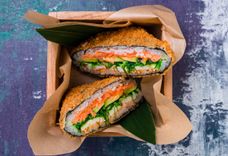 248 г • рис, сливочный сыр, салат айсберг, креветка, морской окунь, пикантный соус, стружка тунца