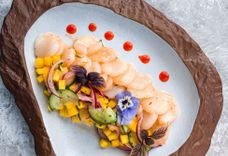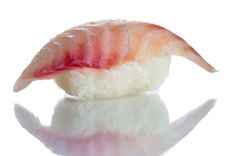 104 г • морской окунь, дайкон, соус сашими, лайм, перец чили, кунжут, соус шрирача
