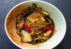 106 г • копчёный угорь, соус терияки, дайкон, соус сашими, лайм, перец чили, кунжут, соус шрирача