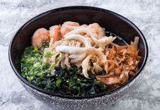 222 г • рис, сливочный сыр, авокадо, кальмар темпура, креветка, стружка тунца