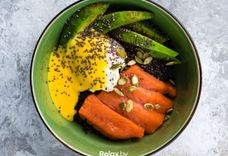275 г • рис, сливочный сыр, соус терияки, жареный лосось, салат айсберг, японский омлет, белый кунжут