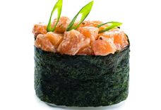 38 г • рис, копчёный лосось, острый соус, зеленый лук