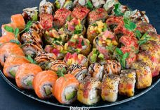 1657 г • Фрай юдзу маки 8 шт, Сумоку маки 8 шт, Филадельфия 8 шт, Азуми маки 8 шт, Хотате амаи маки 8 шт, Спайси магуро гриль маки 8 шт