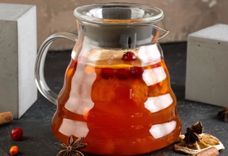 600 мл • черный чай, пюре малина и облепиха, сироп имбирь, лимон, апельсин, клюква, облепиха