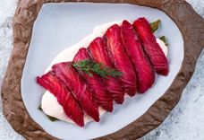 104 г • тунец, дайкон, соус сашими, лайм, перец чили, кунжут, соус шрирача