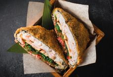 214 г • рис, сливочный сыр, такуан, огурец, тунец в соусе терияки, салат айсберг, соевая бумага