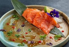 104 г • лосось, дайкон, соус сашими, лайм, перец чили, кунжут, соус шрирача