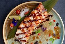 106 г • копчёный угорь, соус терияки, дайкон, соус сашими, лайм, перец чили, кунжут, соус шрирача